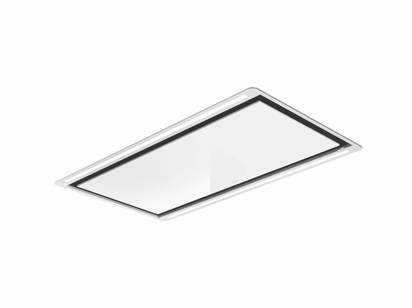 Заподлицо с потолком, красивая белая стеклянная панель хитроумно скрывает мощную и бесшумную систему вытяжки, разработанную так, чтобы гарантировать максимальную производительность даже на значительном расстоянии от варочной панели. Две 14-Ваттные светодиодные панельки с системой регулировки яркости и колориметрической температуры белого цвета обеспечивают идеальную атмосферность кухни.