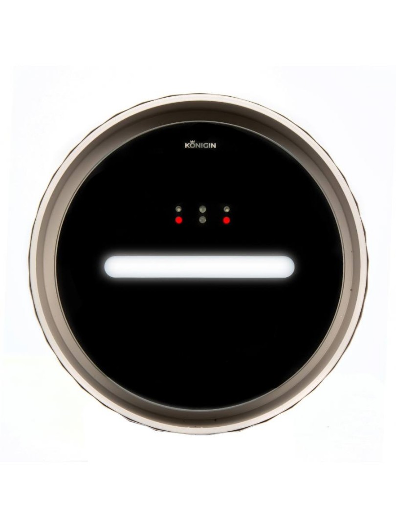 Данная модель оснащена системой управления, распознающей движения рук (жесты) под вытяжкой на стеклянной декоративной панели. Светодиодный индикатор, отображает текущую скорость работы вытяжки определенным цветом (синий, фиолетовый, зеленый, красный). Цвет диода отображается на поверхности варочной плиты, расположенного под вытяжкой.