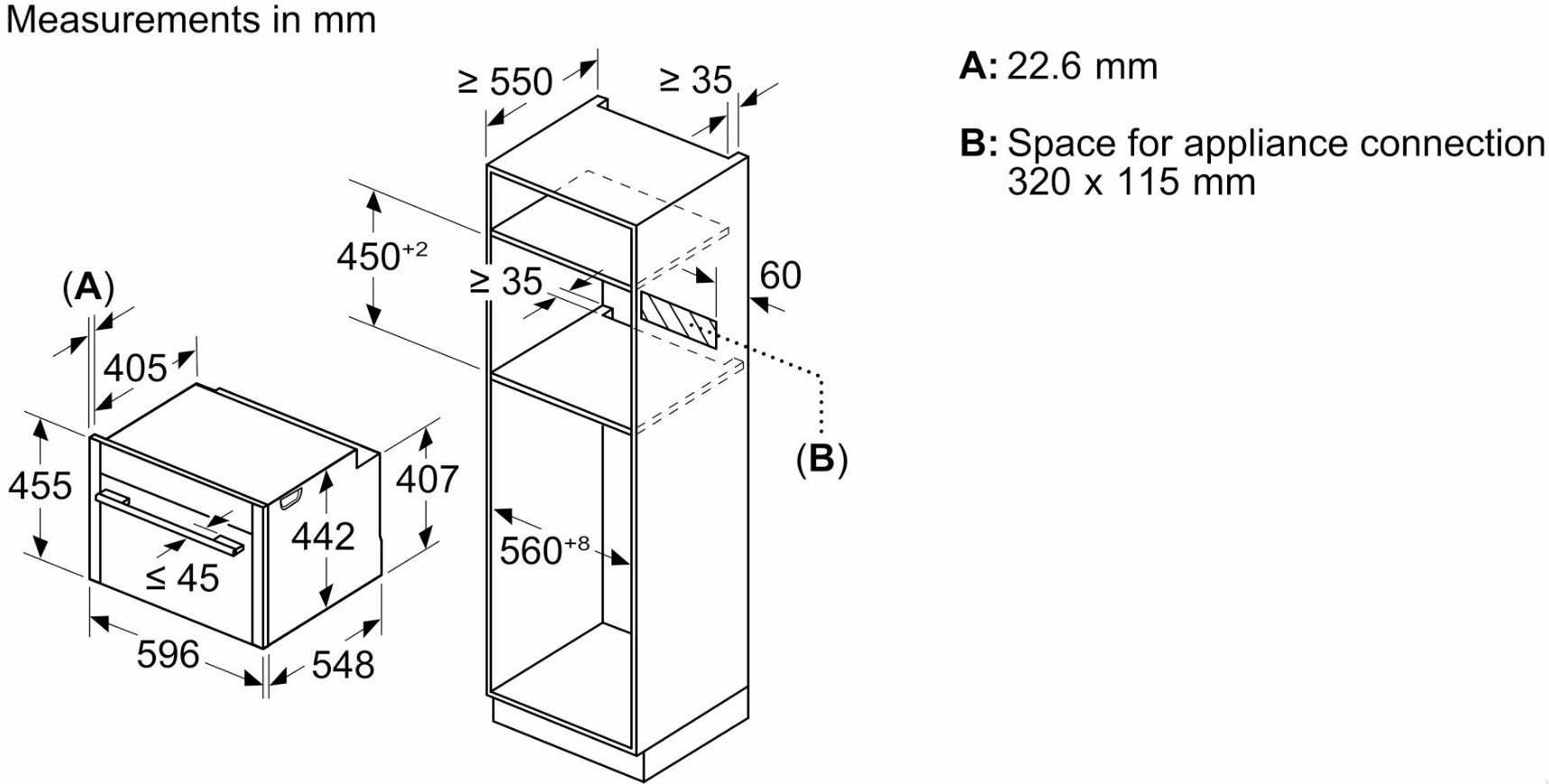 • Размеры ниши для встраивания, см (В х Ш х Г): 45-45.5 х 56-56.8 х 55