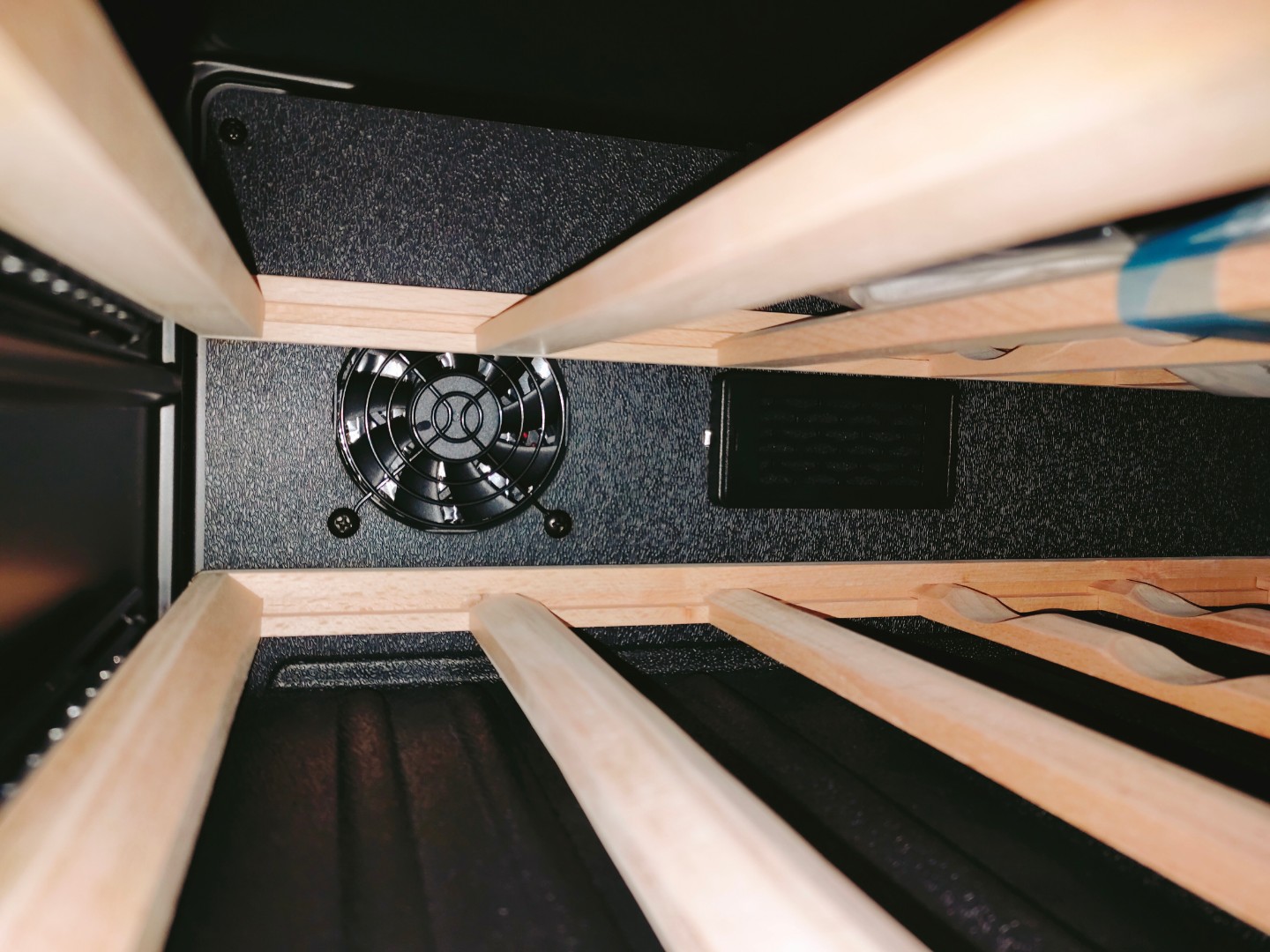 Благодаря стеклянной двери с УФ-тонировкой, гарантирующей защиту вин от солнечного света, можно изучать содержимое, не открывая шкаф. Полки из дерева обеспечивают безопасное размещение бутылок, а мягкая светодиодная подсветка придает шкафу элегантность.